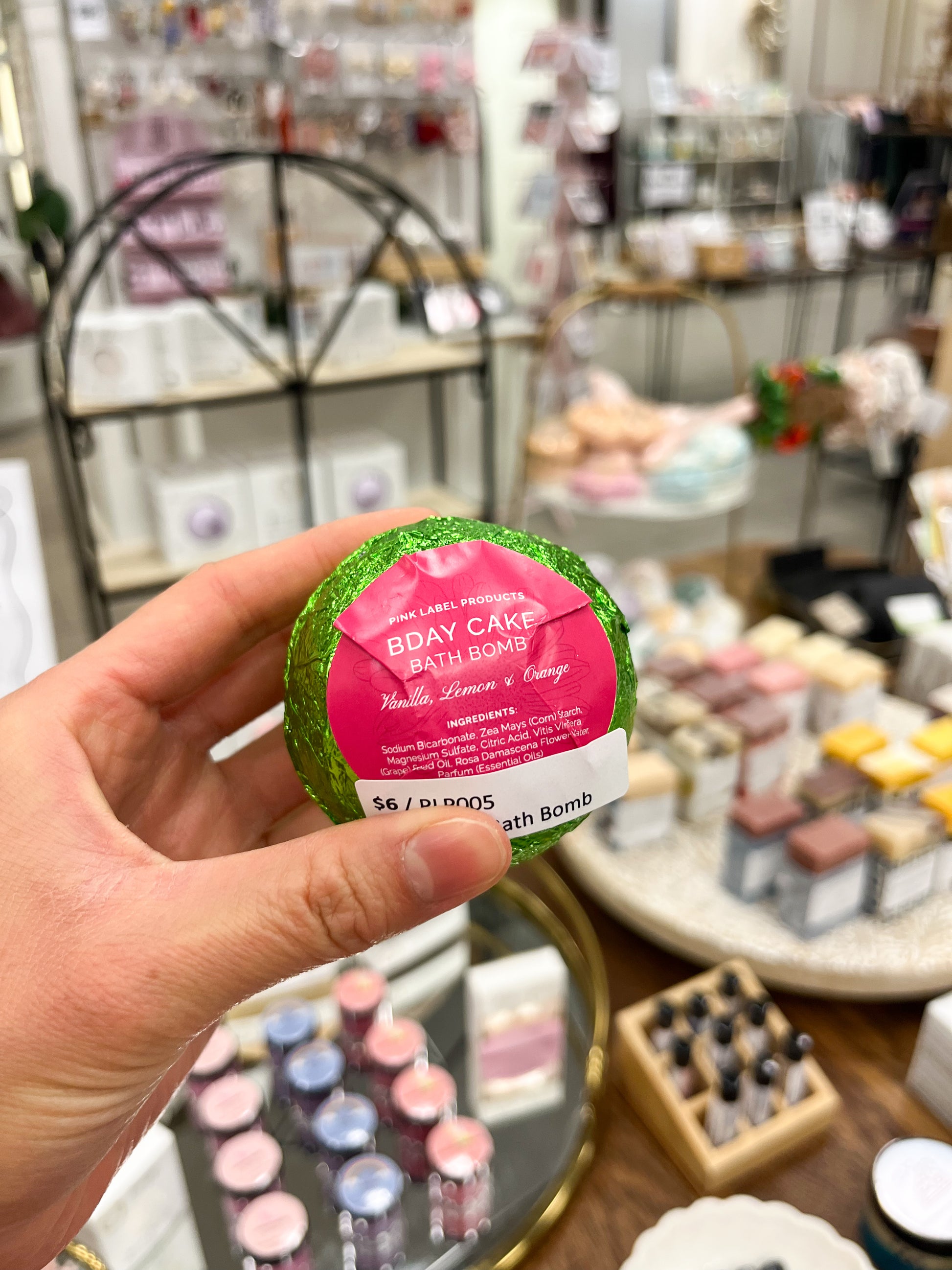 A sweet bath bomb featuring scents of vanilla, lemon and orange.
