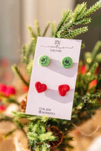 Indulge in holiday mischief with Opal Creative's Stud Two Pack. Channel the spirit of the green grump with a pair of expressive faces, while the second set features glittering hearts inspired by a certain heartwarming transformation from a beloved Christmas story we all know and love.