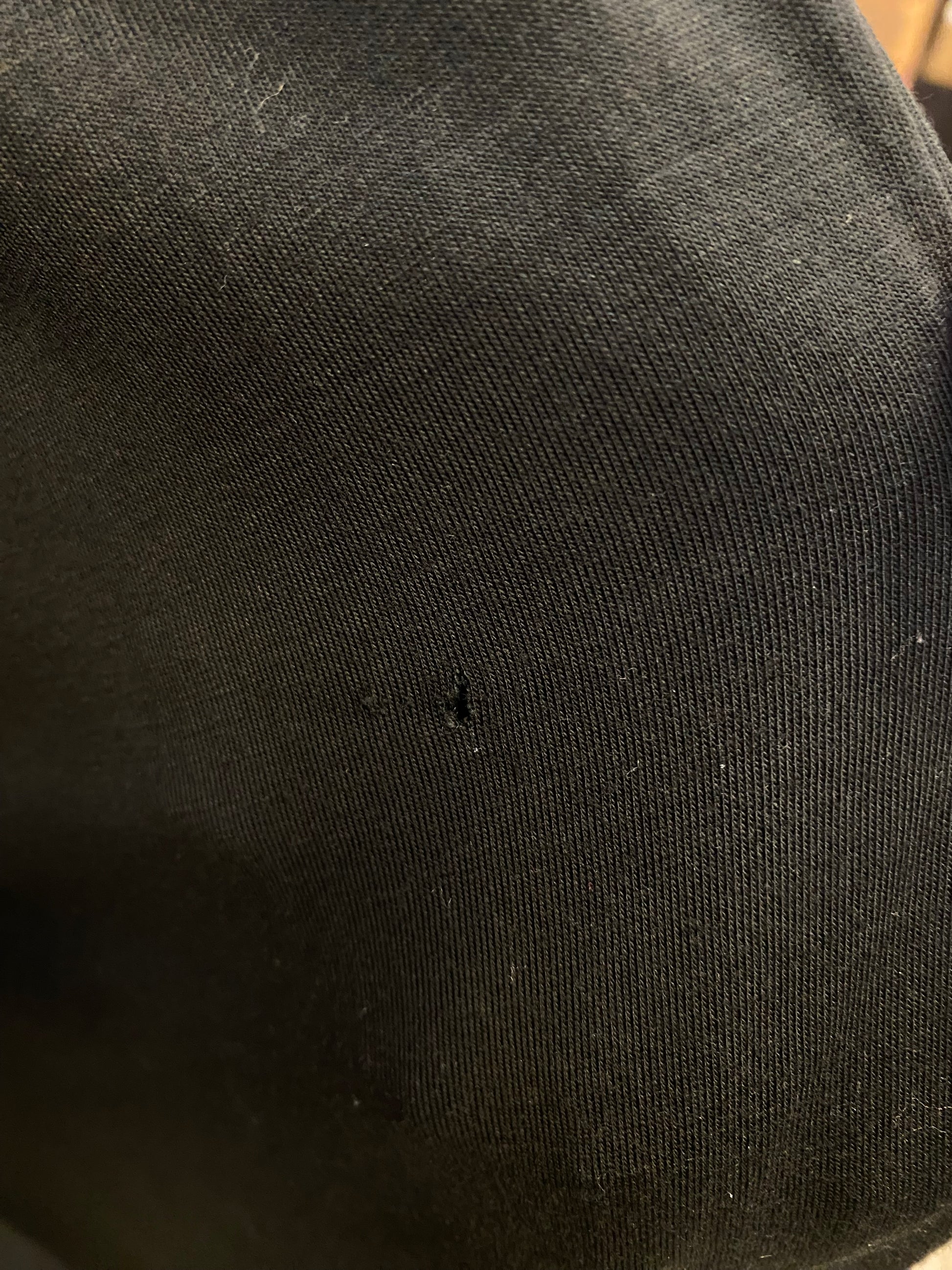 L - Small hole on the front near left pocket