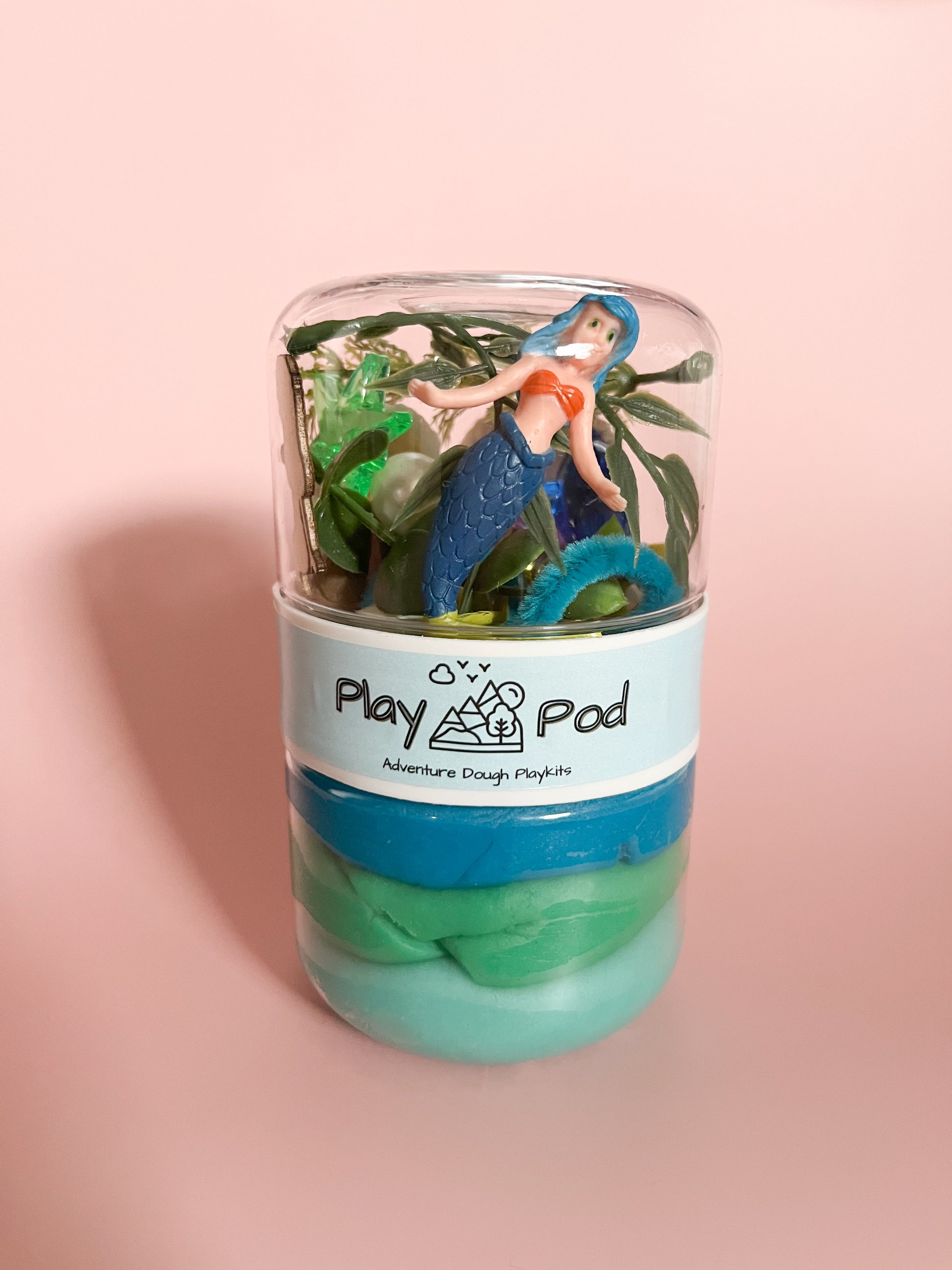 A vibrant mermaid-themed dough PlayPod for kids to play and exercise their imagination with!