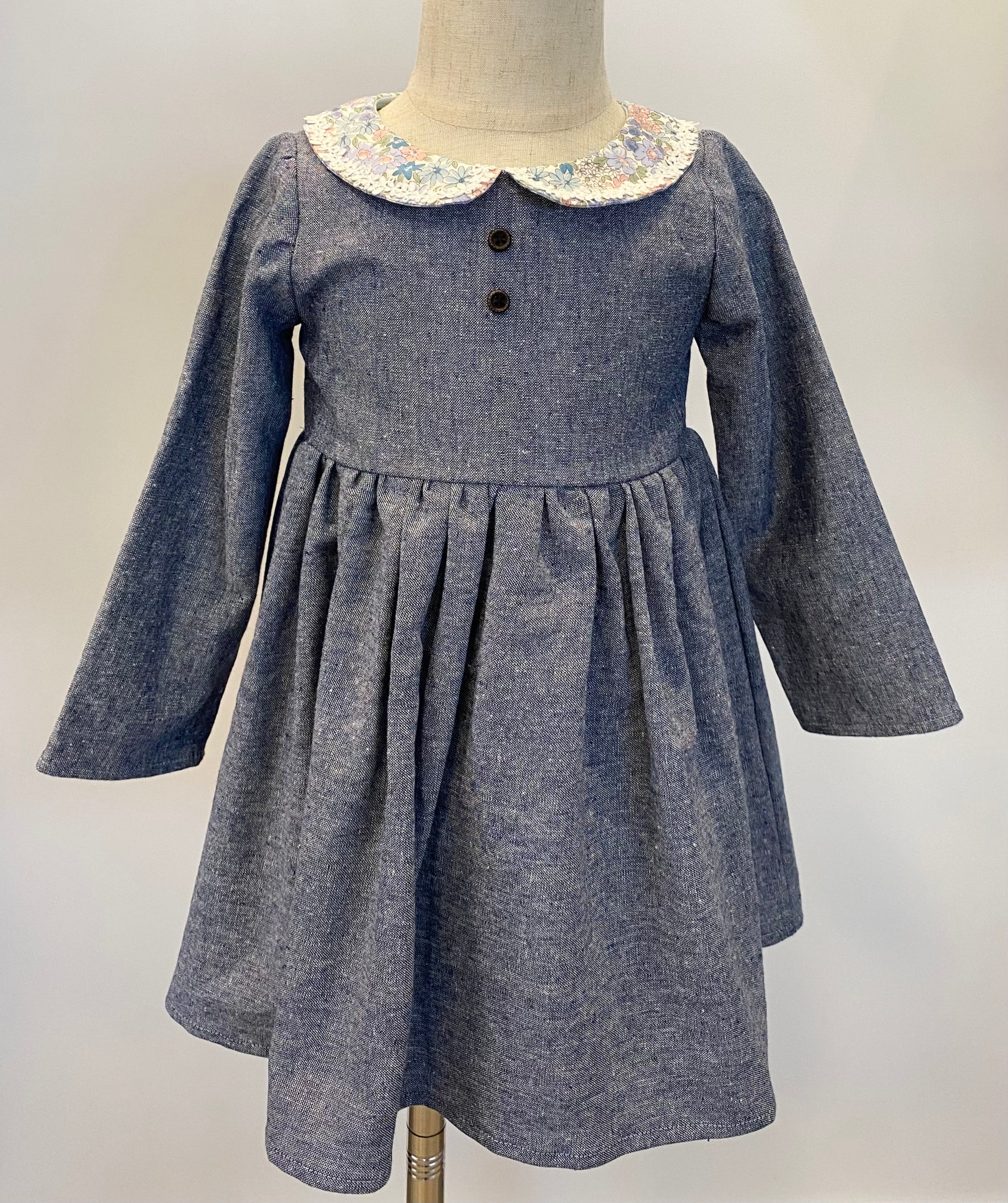 Beautiful long-sleeve dress with an adorable collar! Snap on buttons make it easy for little ones to dress themselves with this dress.