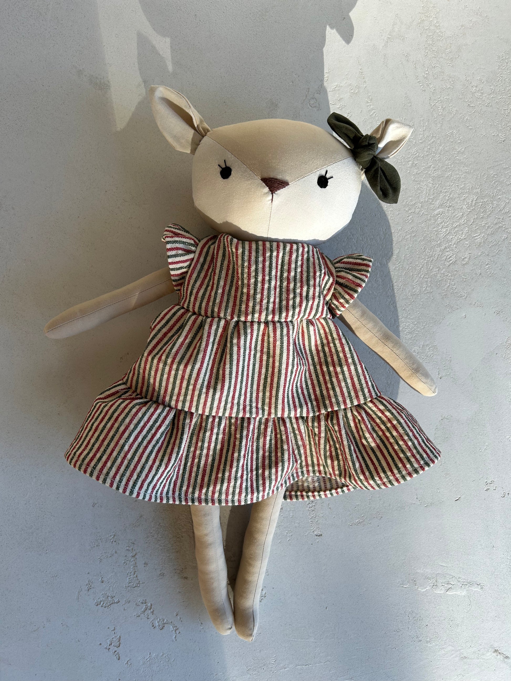 Bedtime Buddies by Studio Daughter are handcrafted heirloom plush toys made with recycled textiles. Bedtime Buddies are stuffed with new, premium poly fill stuffing but all fabric and most sewing notions are second hand. All fabric is laundered and inspected to ensure a safe and clean play toy for your little one.