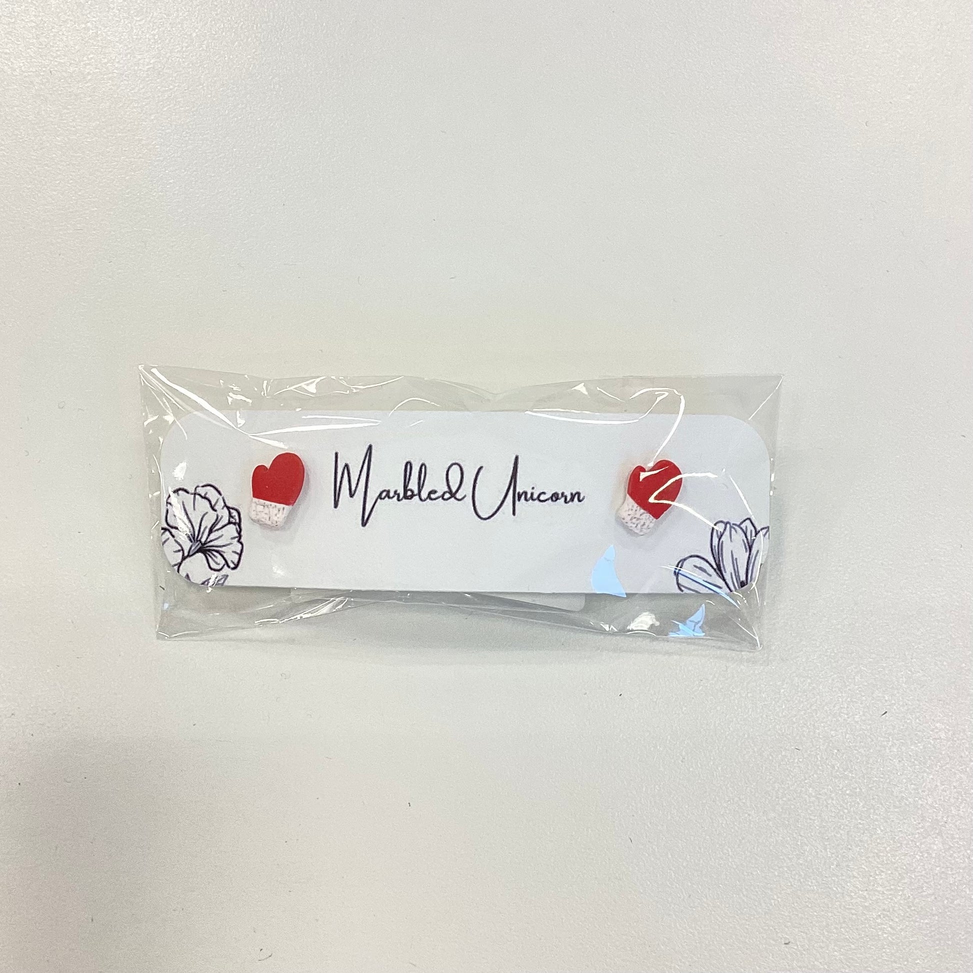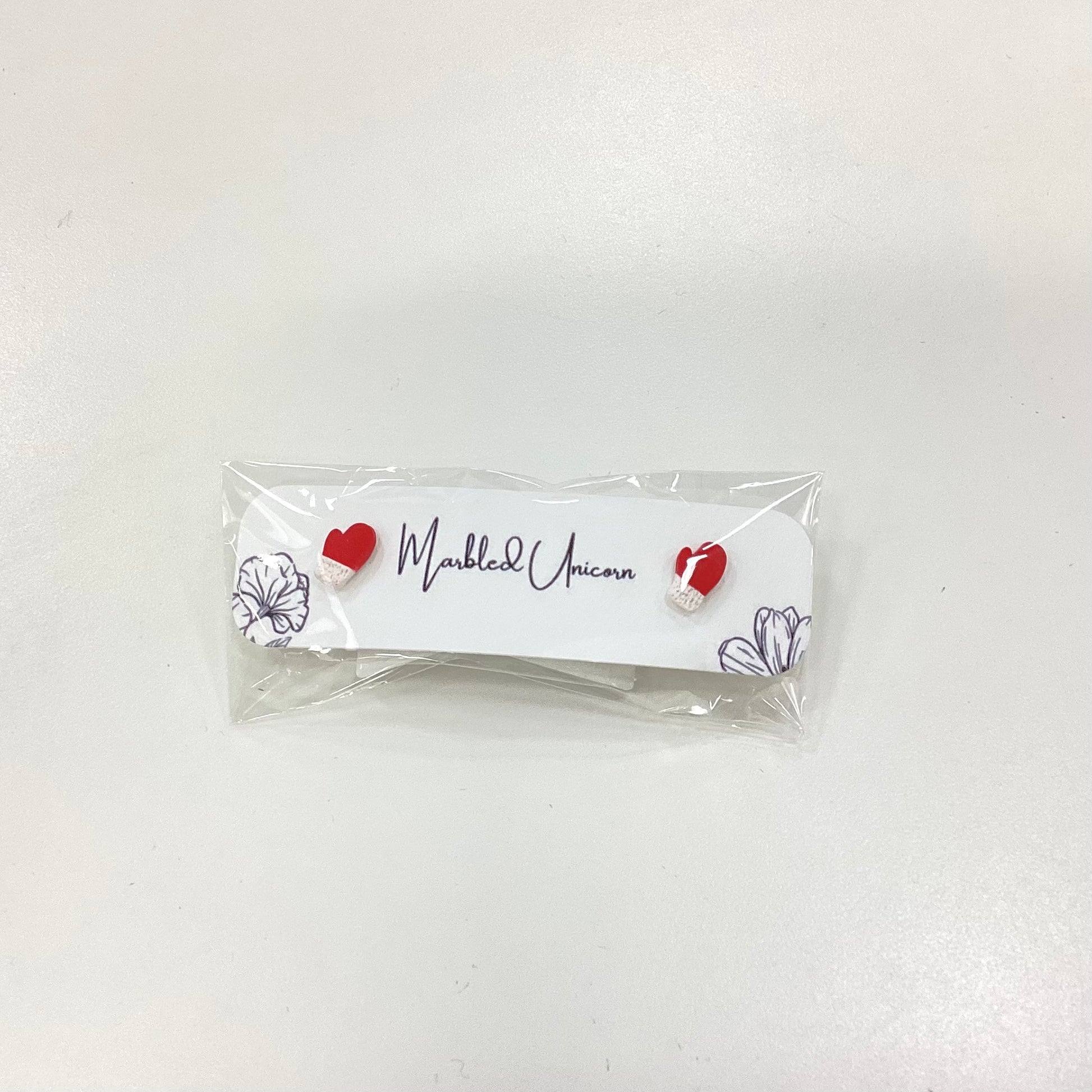 Small mitten stud earrings. Earring posts are made with hypoallergenic metal alloy material (free from lead and nickel).
