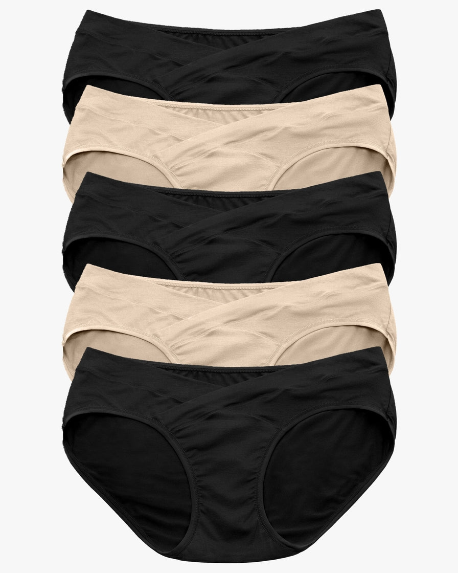 Under-The-Bump Bikini Underwear (5-Pack) Maternity/Postpartum Black/Beige